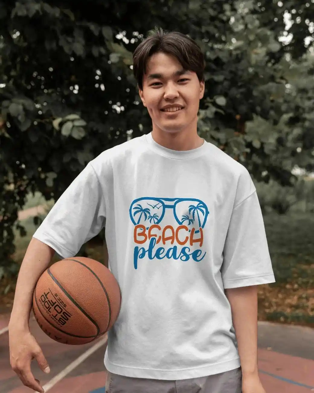 Bring the sunshine wherever you go with the Beach State of Mind tee. The front features a cheeky “Beach Please” slogan framed by retro sunglasses and palm trees — setting the tone with laid-back humor and tropical vibes.On the back, escape into paradise with a vivid beach scene: surfboards, bonfire, camper van, and towering palms set against a breathtaking sky that fades from sunset to starlight.