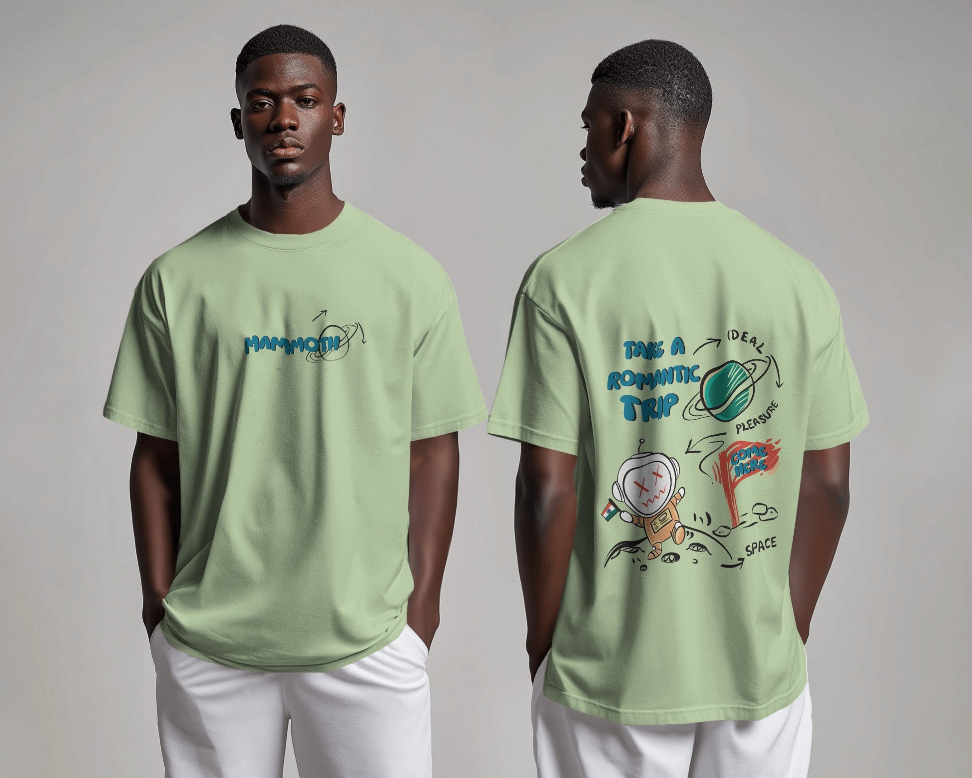 The Take a Romantic Trip T-Shirt perfectly represents both love and the mysteries of the cosmos with style. This artistic cosmic t-shirt contains a print of an adventure beyond the stars. It is made with high-quality fabric that is loose fitting to accommodate dreamers who like to combine romance and exploration.