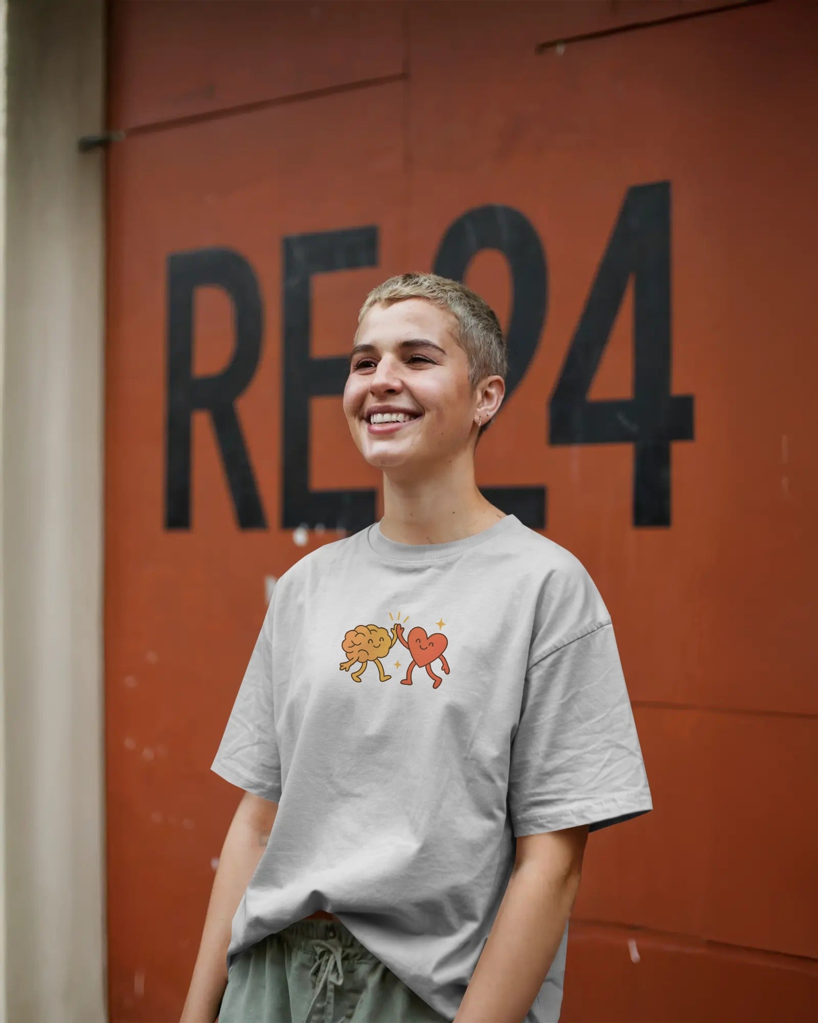 Soft, sweet, and irresistibly cozy—the Paw Pile Tee wraps you in comfort and cuteness. The front design features an endearing pile of sleepy animal friends—puppy, bunny, kitty, and chick—stacked in a cuddly group hug beneath the hand-lettered phrase "PAW PILE." The back continues the playful vibe with a vertical lineup of plush toys and pet icons: a teddy bear, bone, ball, duck, and mouse, all rendered in soft pastel tones.